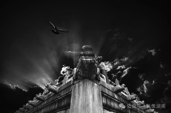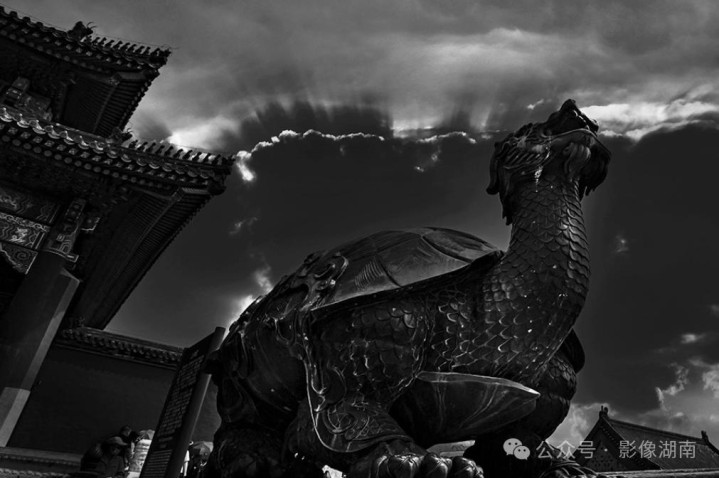 站在太和殿上取景,我忽然理解了黑白摄影的魅力——当最后一缕暮光从螭吻脊兽的鳞片上滑落,那些被朱红与明黄遮蔽了六百年的呼吸声,忽然在单色光谱中清晰可闻。