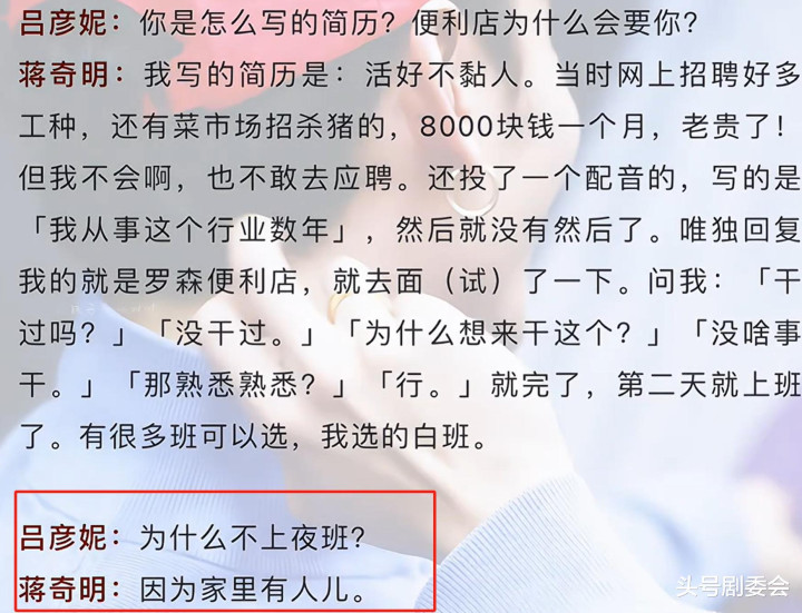 当初蒋奇明在便利店打工时被人问到过“为什么不上夜班?”,而他则说“家里有人儿”,这一刻所有偶像剧都弱爆了!